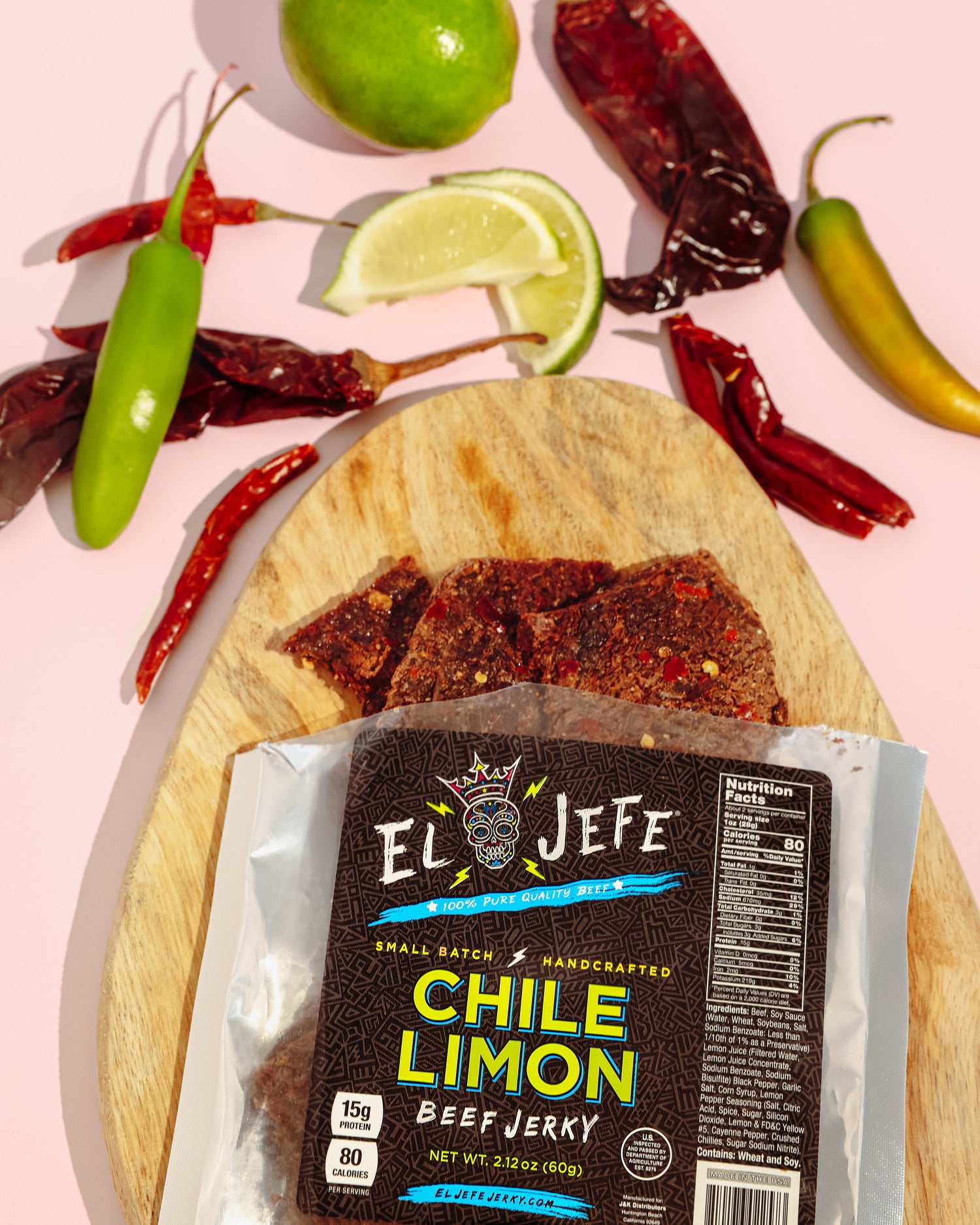 Our beef jerky is made with 100% USDA Choice Sirloin sourced locally here in Southern California. Hand crafted weekly, our beef is double tenderized to increase the tenderness of the meat and enhance it’s flavors. In an effort to minimize preservatives, we use unique homemade marinades with bold American flavors that have been tried and tested for over 20 years. We believe in a quality product, give El Jefe Snacks a try, you wont be disappointed!